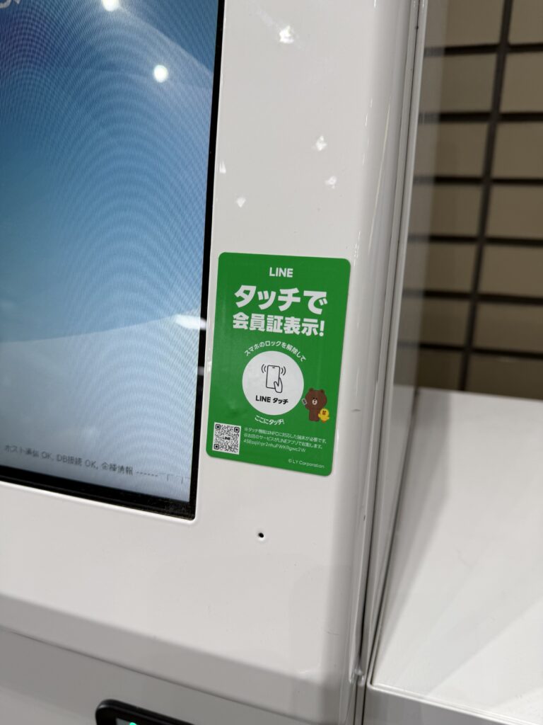 入金機にも貼ってあります。スマホをここにタッチするだけで簡単にLINEの練習場ページが表示できます!