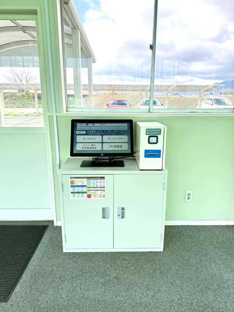駐車場から無人営業時間に直接入れる出入り口付近にはチェックイン専用機もあります。