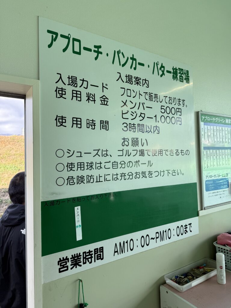 以前訪問した際には雨でできなかったアプローチ・パター・バンカー練習場を利用してみました。フロントで料金を支払うと、小さなマグネット札を渡され、それをここに貼り付けて練習に向かいます。