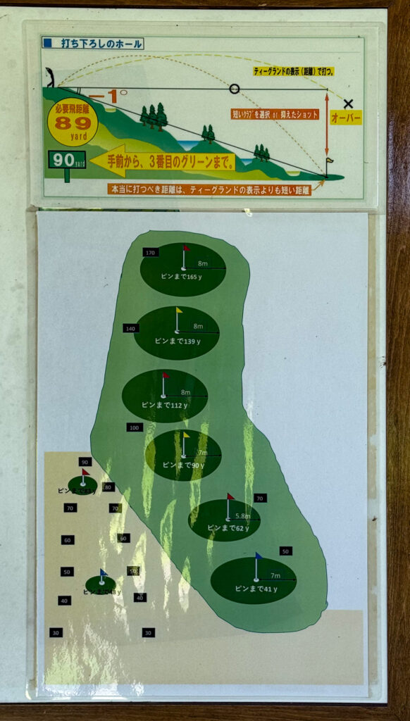 距離だけでなく打ちおろし角もしっかり掲示されています。