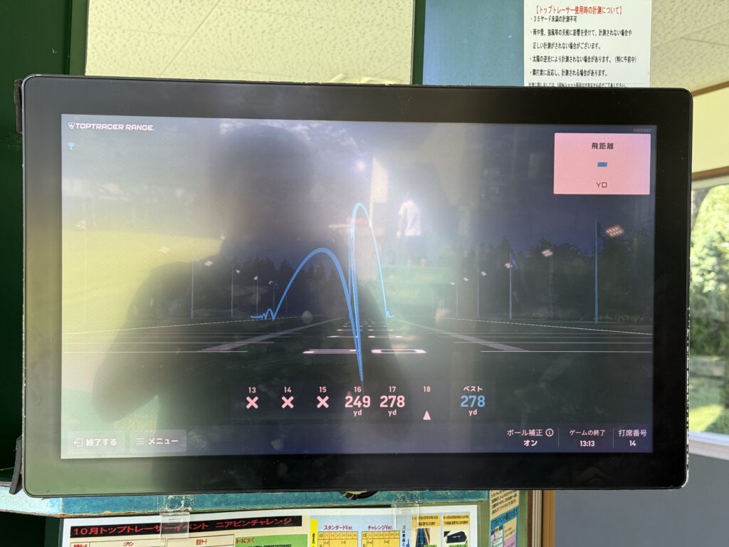 とりあえず、トップトレーサー・レンジのニアピンモードでグリーンに乗せるチャレンジを是非!と案内してもらったので・・・