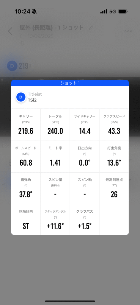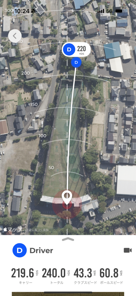 260ヤード越えを2発くらい打てたので、満足していたのですが、RapsodoMLM2Proの向きの指定が少しおかしかったので、設定をし直して1球打ったら・・・278ヤード!