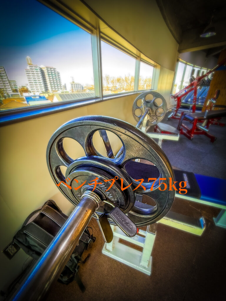 ベンチプレスは苦手で75kgで1回しか挙がりません・・・