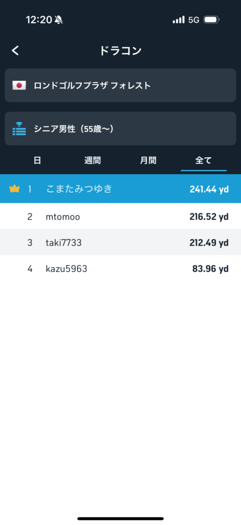 まだシニアでドラコンモードをやった人が少ないので、一応1位!