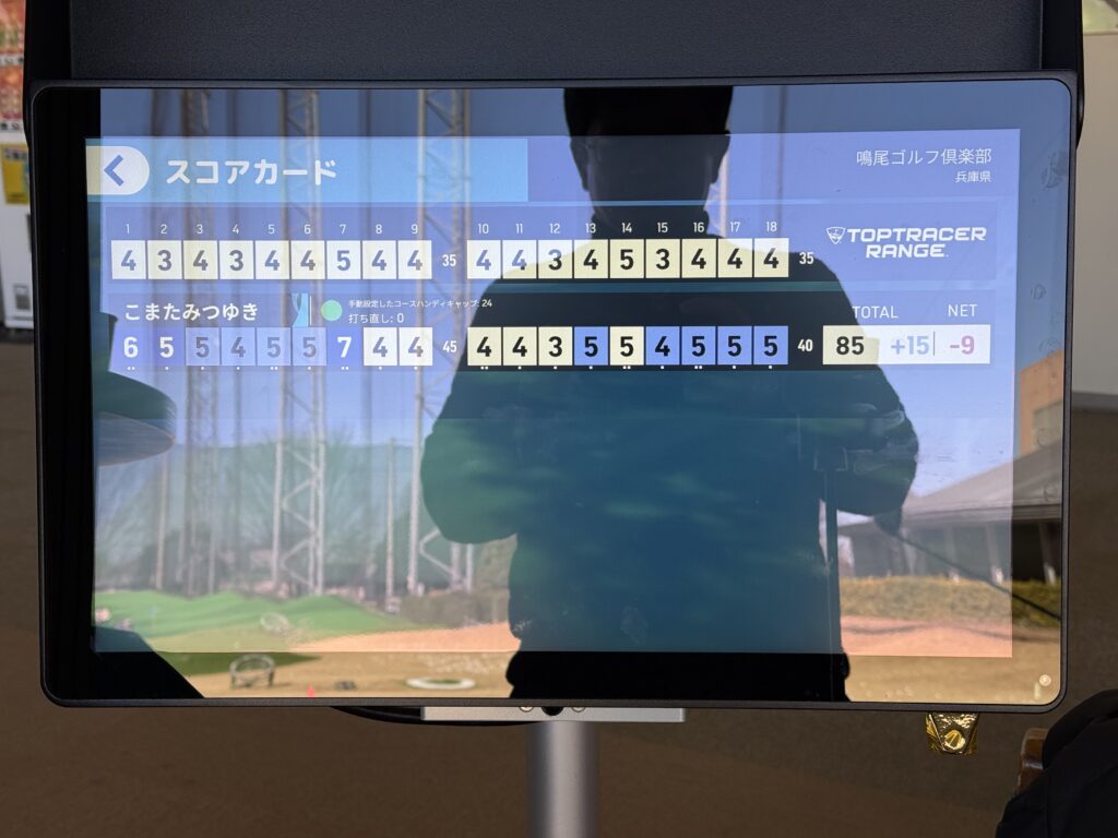 鳴尾ゴルフ倶楽部のフルバックで85。本物の鳴尾ゴルフ倶楽部ではレギュラーティでも100を切ってません・・・