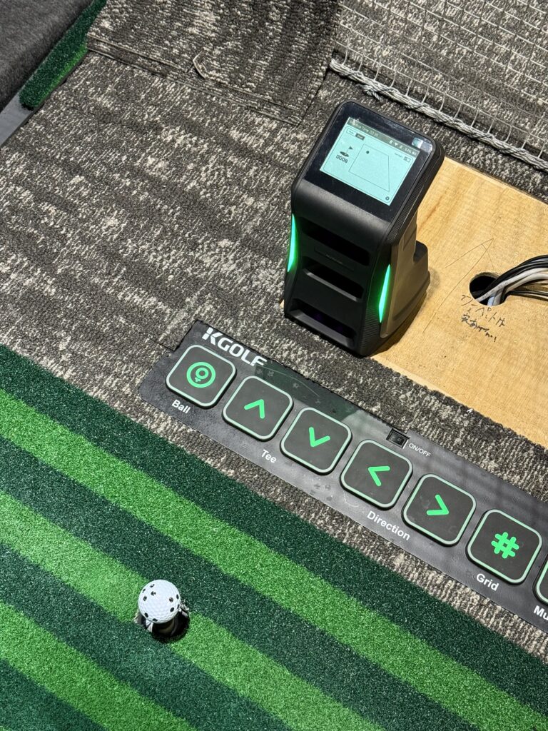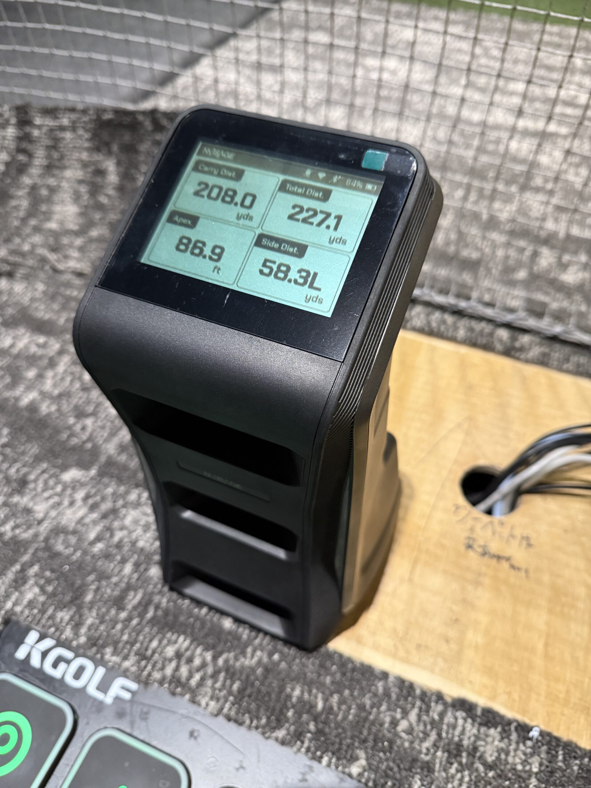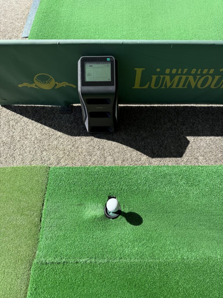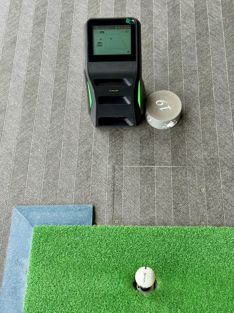 屋外練習場で使ってみようとすると、打席仕切り板のためにティーと測定器の位置が近すぎて、ティーアップした状態で測定できない練習場がほとんどでした。ボールをアイアンマットに置けば問題ない距離になります。ただし、認識可能エリア内にボールが2個以上あると測定できないので、ティーの位置より打席後方側に測定器をずらして、ボールもやや後方に置かないとうまく測定できません。
