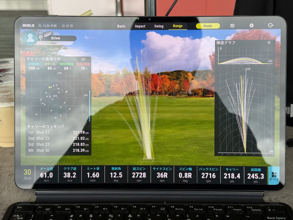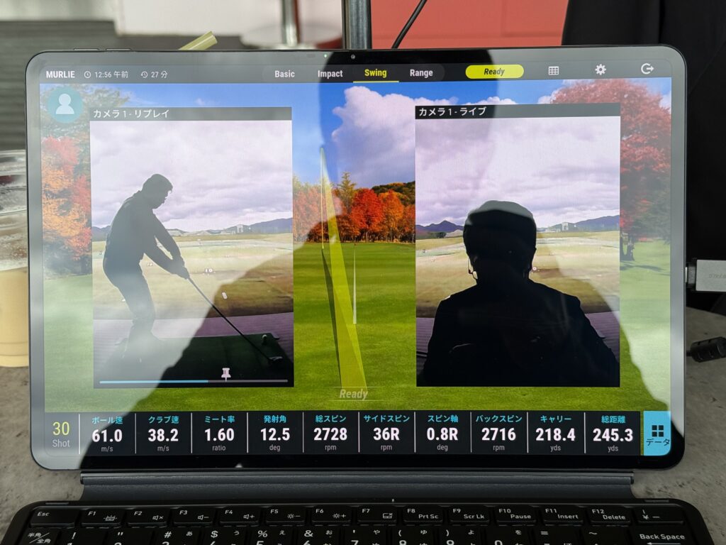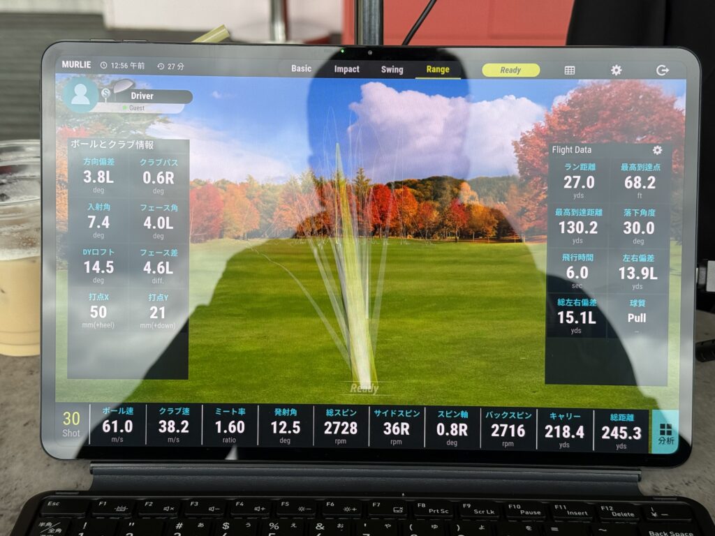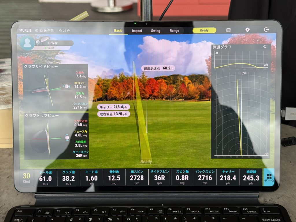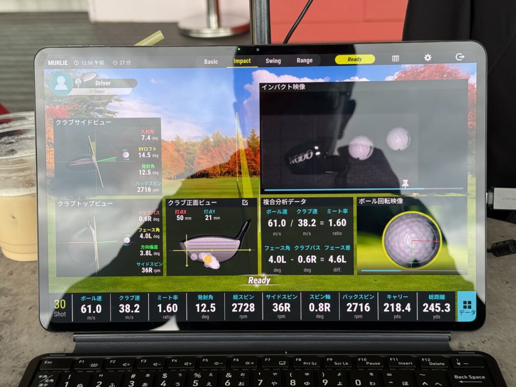 屋外練習場で使ってみようとすると、打席仕切り板のためにティーと測定器の位置が近すぎて、ティーアップした状態で測定できない練習場がほとんどでした。ボールをアイアンマットに置けば問題ない距離になります。ただし、認識可能エリア内にボールが2個以上あると測定できないので、ティーの位置より打席後方側に測定器をずらして、ボールもやや後方に置かないとうまく測定できません。