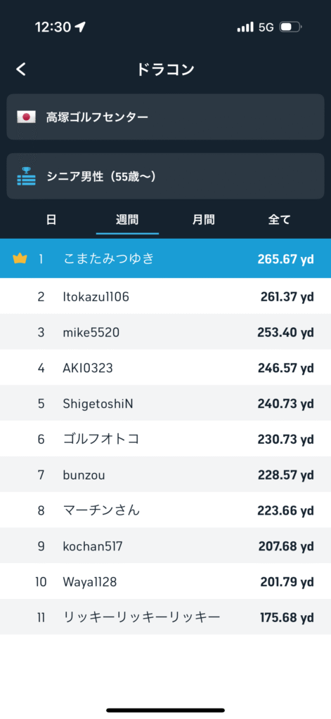 とりあえず今週のシニア1位!まあ、そもそもシニアでドラコンモードをやる人は少ない感じですが・・・