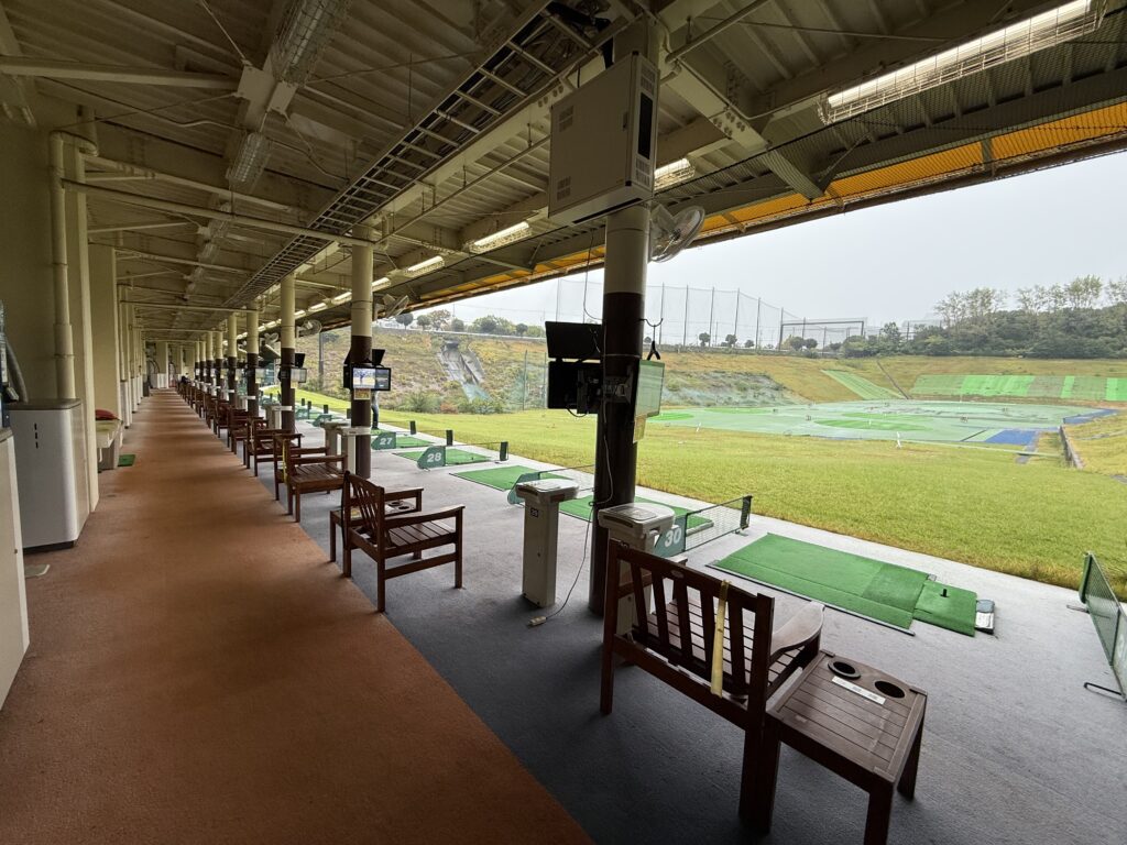 フロントから打席にはかなりの階段を降りていく構造で、フロントと打席棟がこれだけ離れているのは珍しいかもしれません。