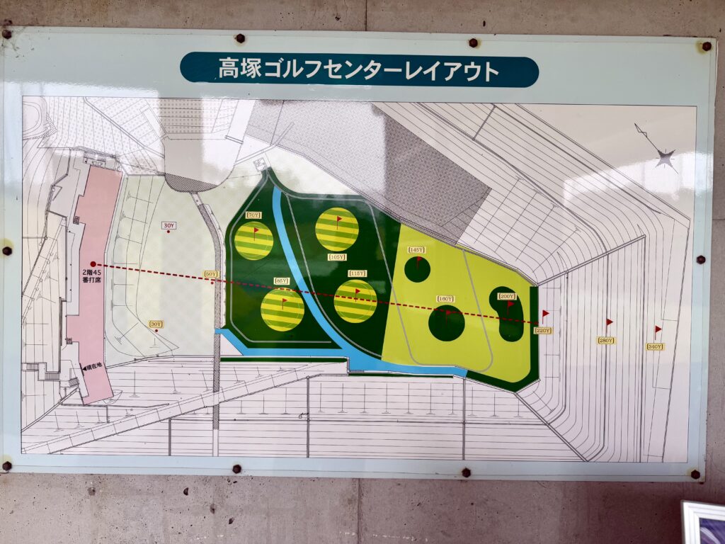 実際は120ヤードくらいから左が狭くなってきているのですが、1階打席からだとほとんど気にならない感じでした。