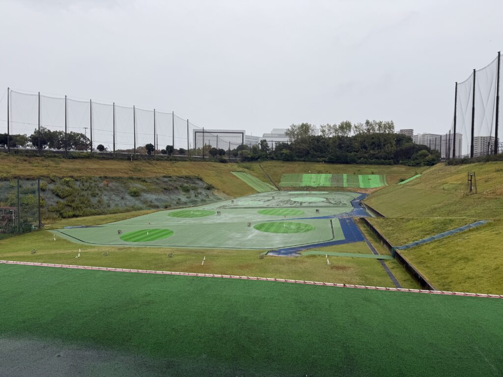 3階打席からの眺めです。3階打席はトップトレーサー・レンジが使えませんが、落下地点までよく見えるので、飛距離の確認はやりやすそうです。