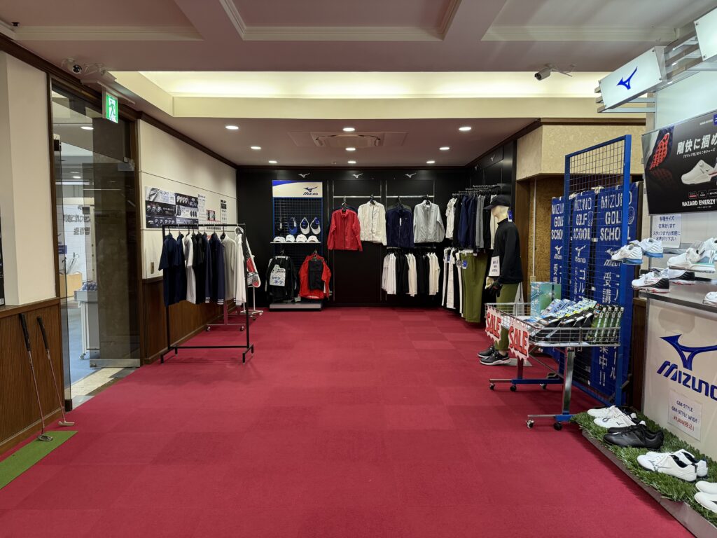 ミズノが運営している練習場ですので、ショップにはミズノ製がずらり!