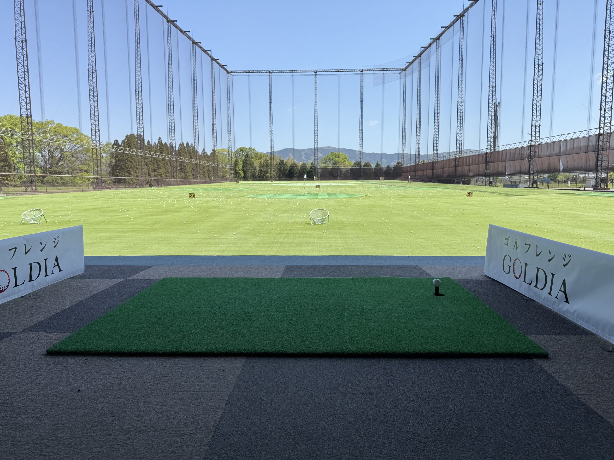 2026年4月に1週間で練習場6カ所回る行脚をしている際に、GOLDIA田原本でも練習しました。スイング修正中ですが、グラウンドも打席も水平で違和感がないおかげで、だいぶ良い感じに修正できてきました。