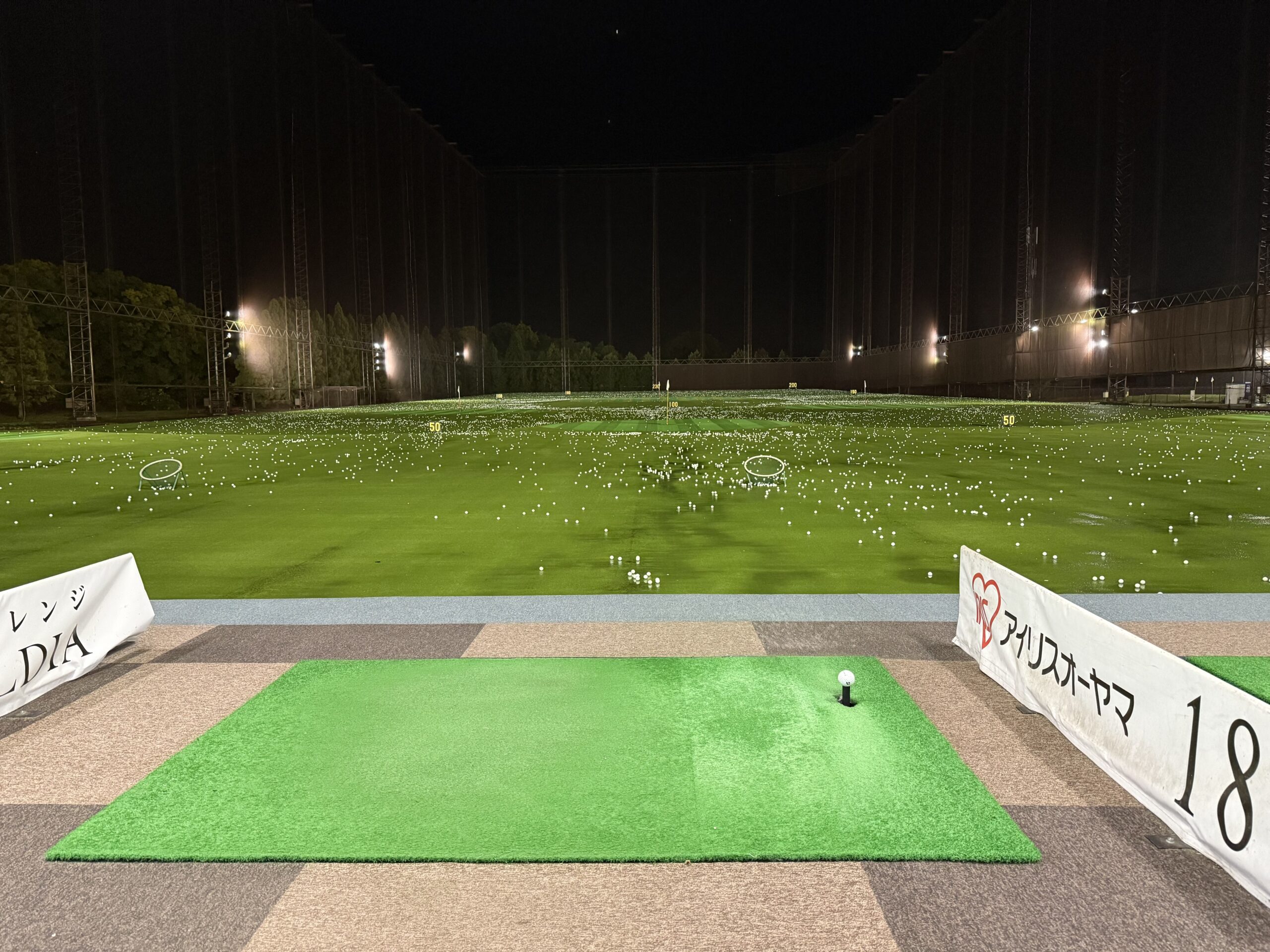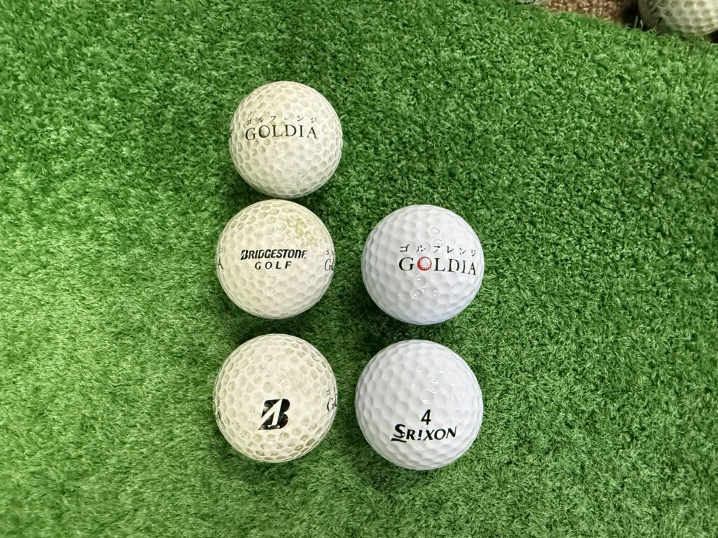 よく見ると、ブリジストンとスリクソンのボールがあることに気がつきました。ブリジストンはやや古い感じのボールが多く、スリクソンは新しめのボールが多いので、おそらく最近入れたのはスリクソンだと思いました。どちらも気持ちよく飛ぶレンジボールだと思いますが、打感がちょっと違います。ブリジストンの方が硬めで弾く感じ、スリクソンはソフトな感じに私は感じました。同じブランドで2種類のレンジボールというのは新潟県村上市の+Catゴルフ練習場でありましたが、2種類のブランドでどちらもきちんと練習場のロゴ入りというのははじめてだと思うので、比較してみました!