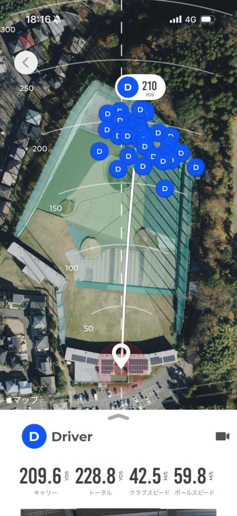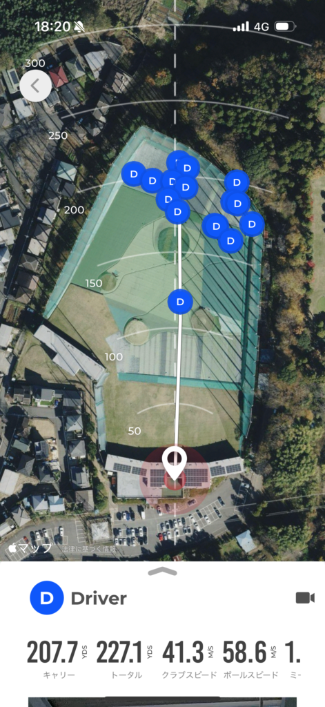 こんな感じに、広い練習場でなおかつ測定器も使えると、クラブの選択や調整にもとても便利です。