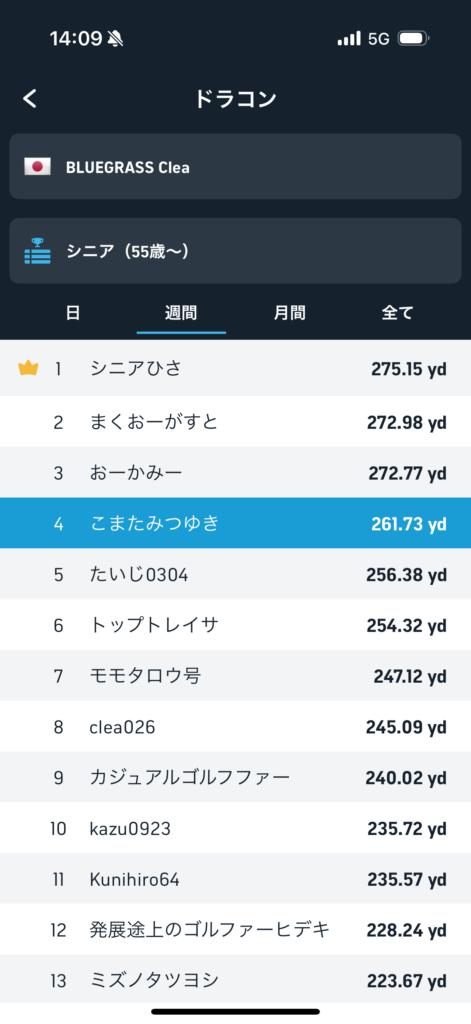 今週のシニア4位でした。
