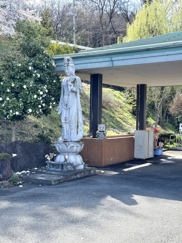 観音様とフクロウがフロント近くで出迎えてくれます。