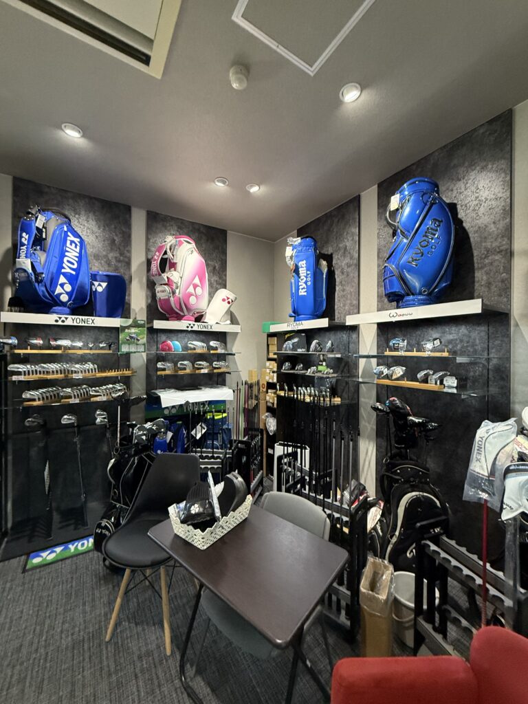 2階にはフィッティングルームがあり、地クラブも置いてあります。インドアフィッティングスタジオもこの奥にあります。
