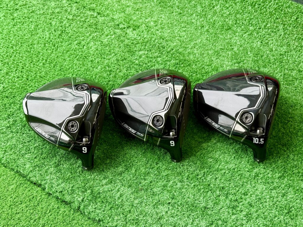 ドライバー3種です。LIGHTNINGにTOUR、TOUR-MID、MAX-10Kと書いてあります。この順にヘッドが大きくなる感じです。